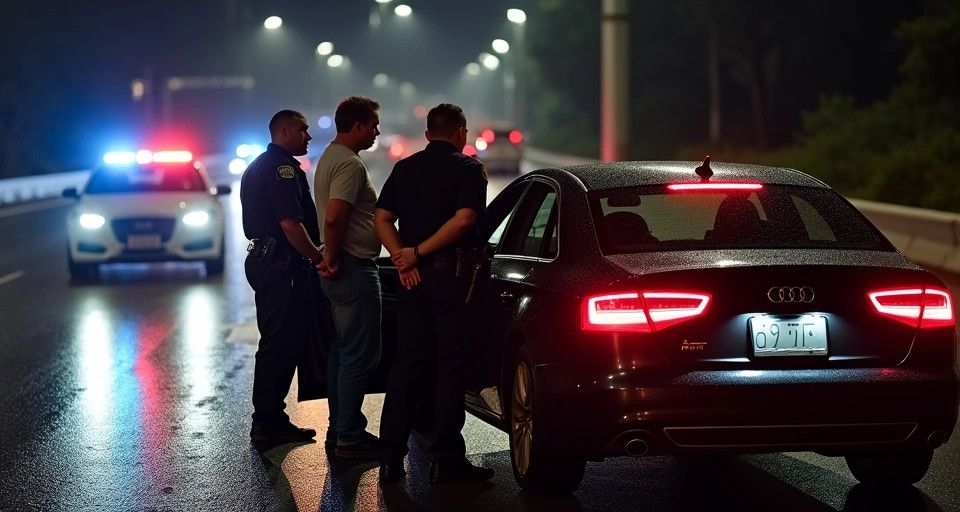 Podczas nocnego patrolu funkcjonariusze zauważyli Audi poruszające się z niesprawnym oświetleniem i zatrzymali pojazd do kontroli. Przy podchodzeniu do samochodu zauważyli, że osoba siedząca za kierownicą zamienia się miejscami z pasażerem.
