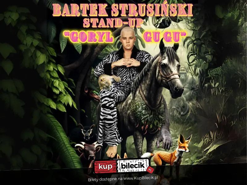 bilety: Bartek Strusiński w programie "Goryl Gu Gu" Zapraszam Was na podróż po najdalszych zakątkach umysłu młodego człowieka. Który nie okiełzna się poruszać tematów przy których poczujecie się wybornie oraz tematów przy których stwierdzicie "co ten typ bierze?" Jeśli jesteś fanem stand-upu oraz fanem posiadania wiecznej radości, to ten program jest właśnie dla Ciebie! Bądź częścią tego pięknego wydarzenia, jeśli nadal to czytasz to znaczy, że widzimy się na miejscu! Uwaga! - Bilety do kupienia tylko na www.kupbilecik.pl - Nagrywanie występu w formie audio i video jest zabronione - Bilet nie daje prawa do przeszkadzania występującym. - Organizator zastrzega sobie prawo wyproszenia przeszkadzającej osoby, bez możliwości zwrotu za bilety. - Kupując bilet akceptujesz powyższe uwagi Bilety do nabycia na: KupBilecik.plStand-up: Bartek Strusiński artyści: Bartek StrusińskiZapraszam Was na podróż po najdalszych zakątkach umysłu młodego człowieka. Który nie okiełzna się poruszać tematów przy których poczujecie się wybornie oraz tematów przy których stwierdzicie "co ten typ bierze" Jeśli jesteś fanem stand-upu oraz fanem posiadania wiecznej radości, to ten program jest właśnie dla Ciebie! Bądź częścią tego pięknego wydarzenia, jeśli nadal to czytasz to znaczy, że widzimy się na miejscu! Bilety do nabycia na: KupBilecik.pl |